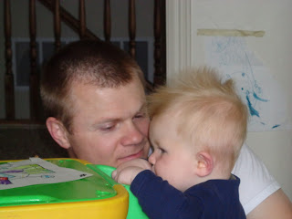 along with being a big 9 month old chub of love, his hair was proving to be out of control on a regular basis. so i tried my hand at cutting it. (or tried my clippers at it i should say). not perfect, but cute enough!
